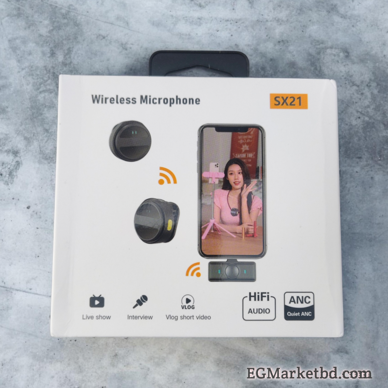 আপনার ভিডিও, লাইভ স্ট্রিম, ভ্লগ বা ইন্টারভিউ আরও পরিষ্কার ও প্রফেশনাল করতে ব্যবহার করুন SX21 Wireless Microphone। ছোট ও হালকা ডিজাইনের এই ম্যাগনেটিক ল্যাভালিয়ার মাইক্রোফোন সহজেই পোশাকে লাগানো যায় এবং 360° সাউন্ড ক্যাপচার করে স্পষ্ট অডিও রেকর্ড করে।